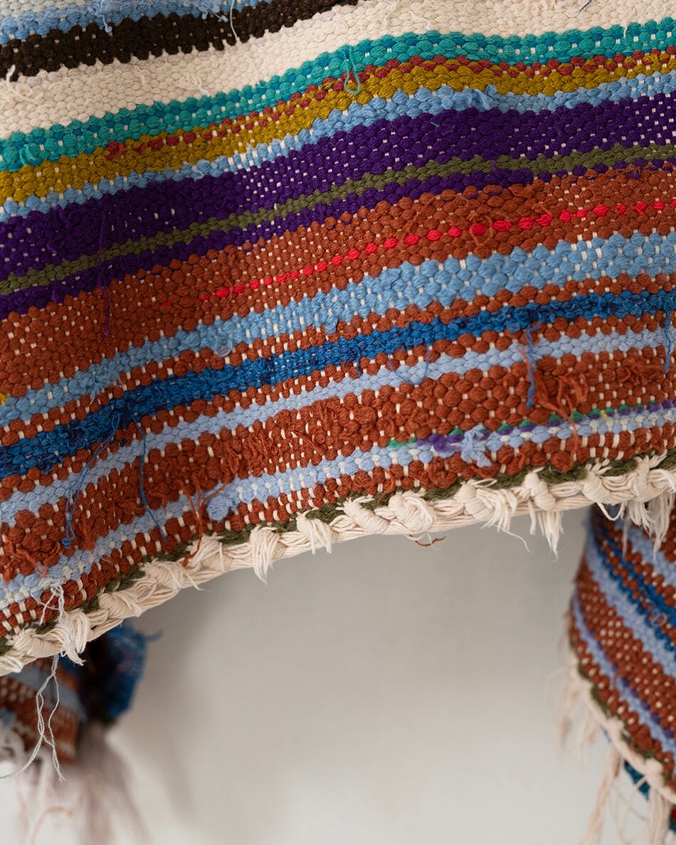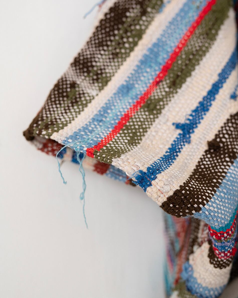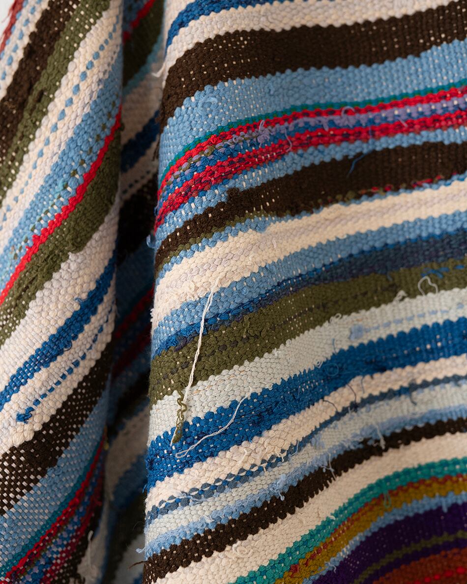 当時はベルベルの女性が砂避けとして衣服の上に羽織ったり、時には赤ちゃんを包んだりとベルベルの暮らしに寄り添い愛用されてきた布。
