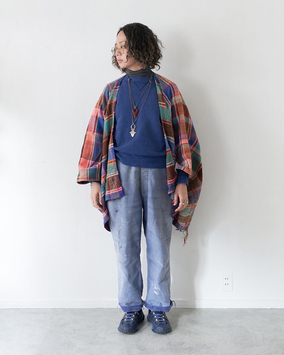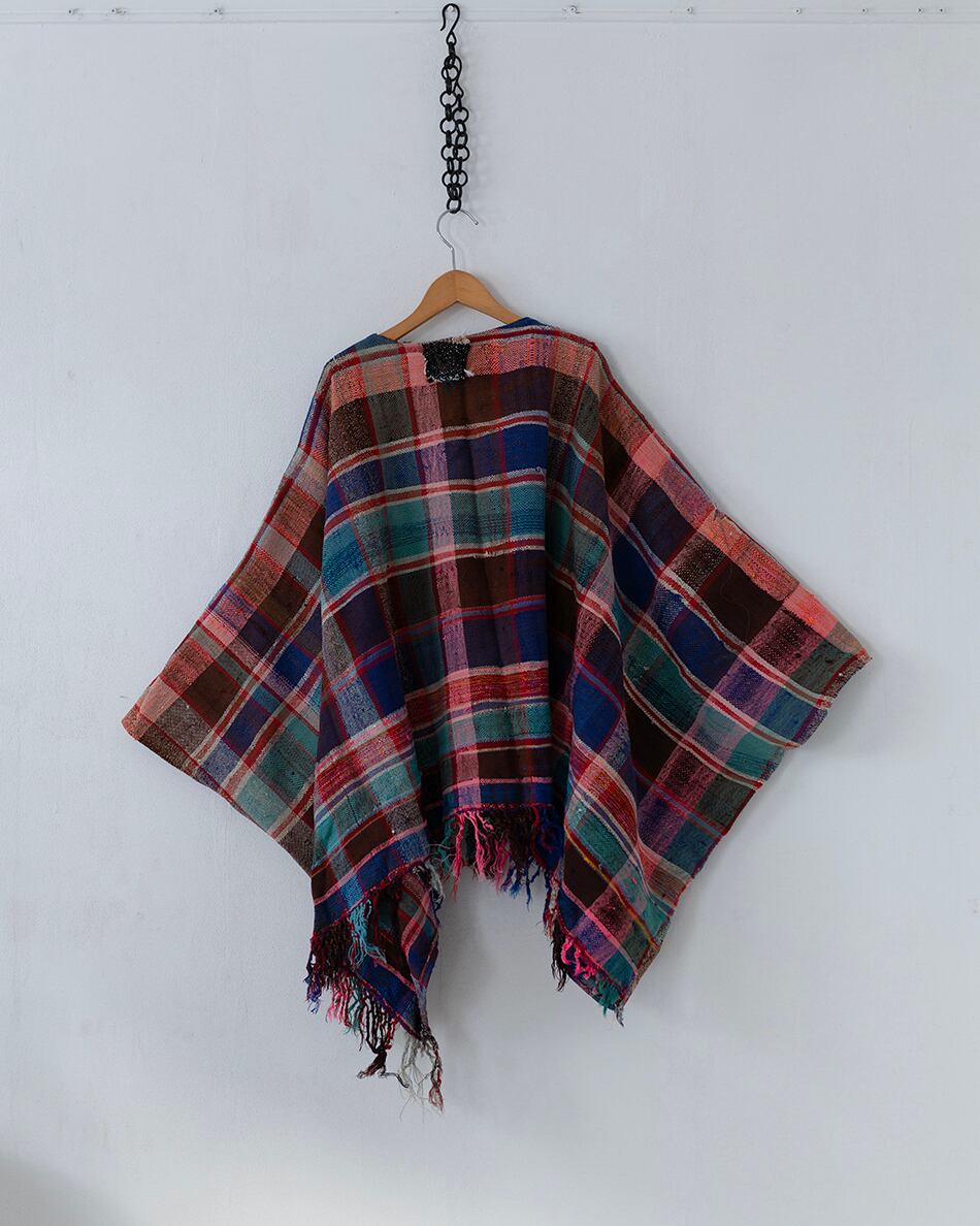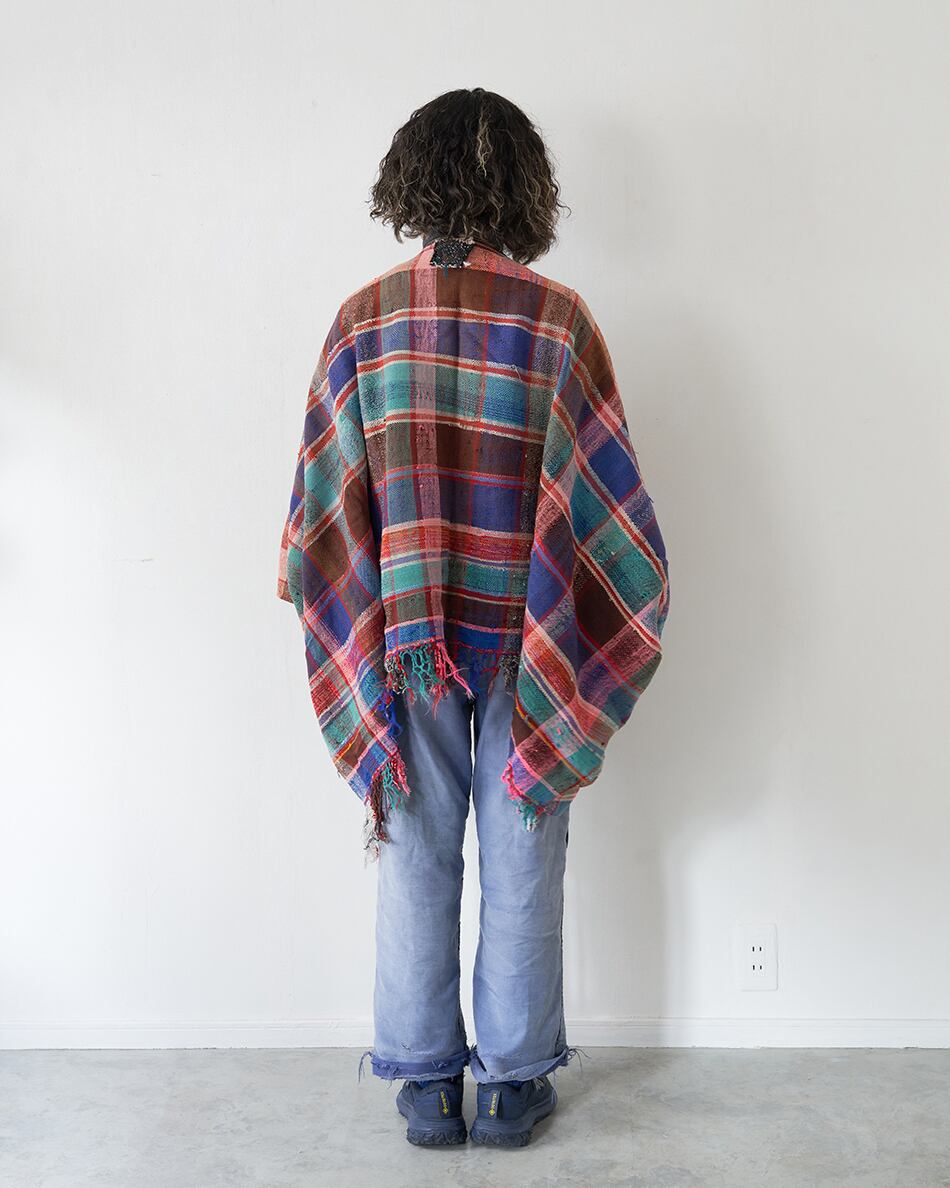 今回は貴重なハイクを使い、ポンチョ型の羽織を作りました。こちらは、薄手のハイクとなっています。シャツやカットソーの上にカーディガンのようにお使いください。この機会にご覧くださいませ。