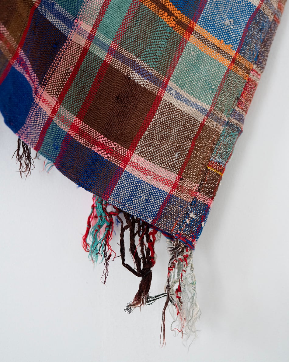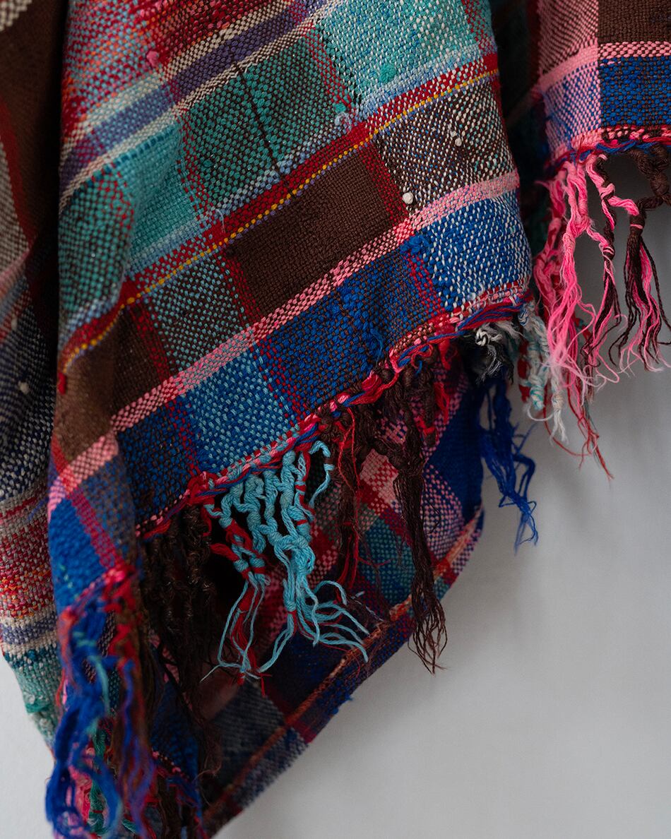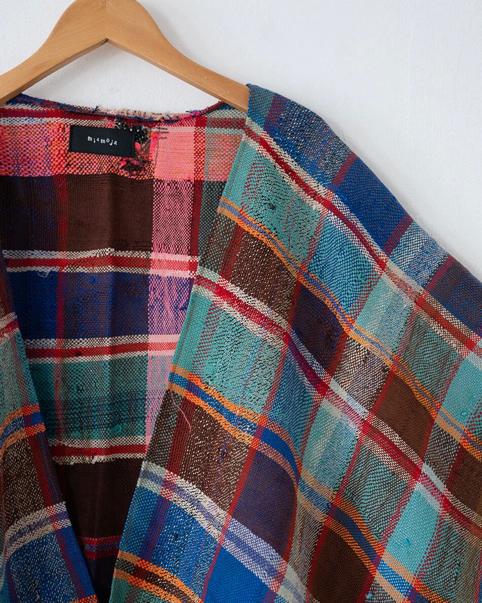 さまざまな色のウールやコットンで織るチェックやストライプはランダムに糸の色を変え、1枚1枚異なり、世界で1枚だけの色合わせとなります。