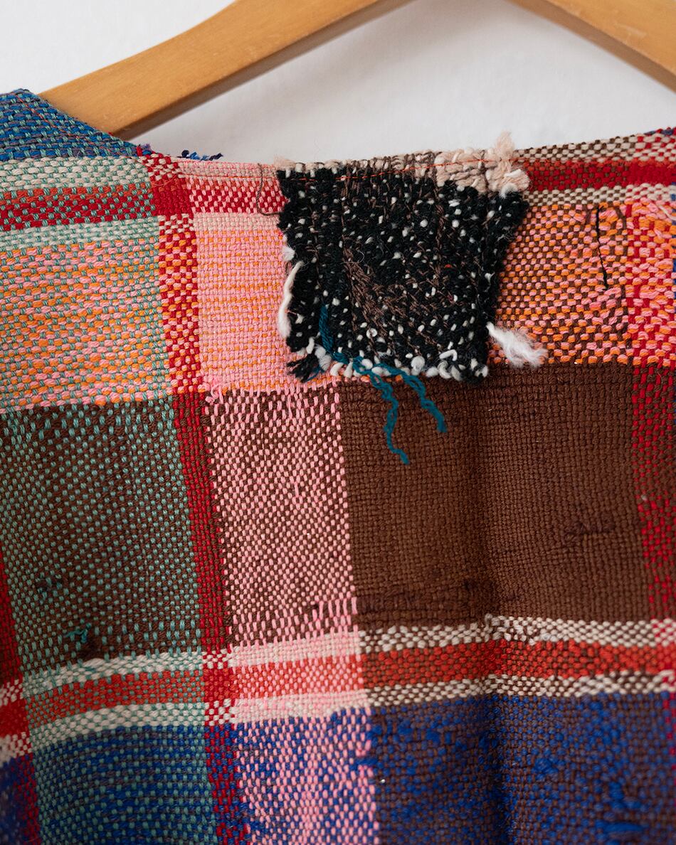 当時はベルベルの女性が砂避けとして衣服の上に羽織ったり、時には赤ちゃんを包んだりとベルベルの暮らしに寄り添い愛用されてきた布。