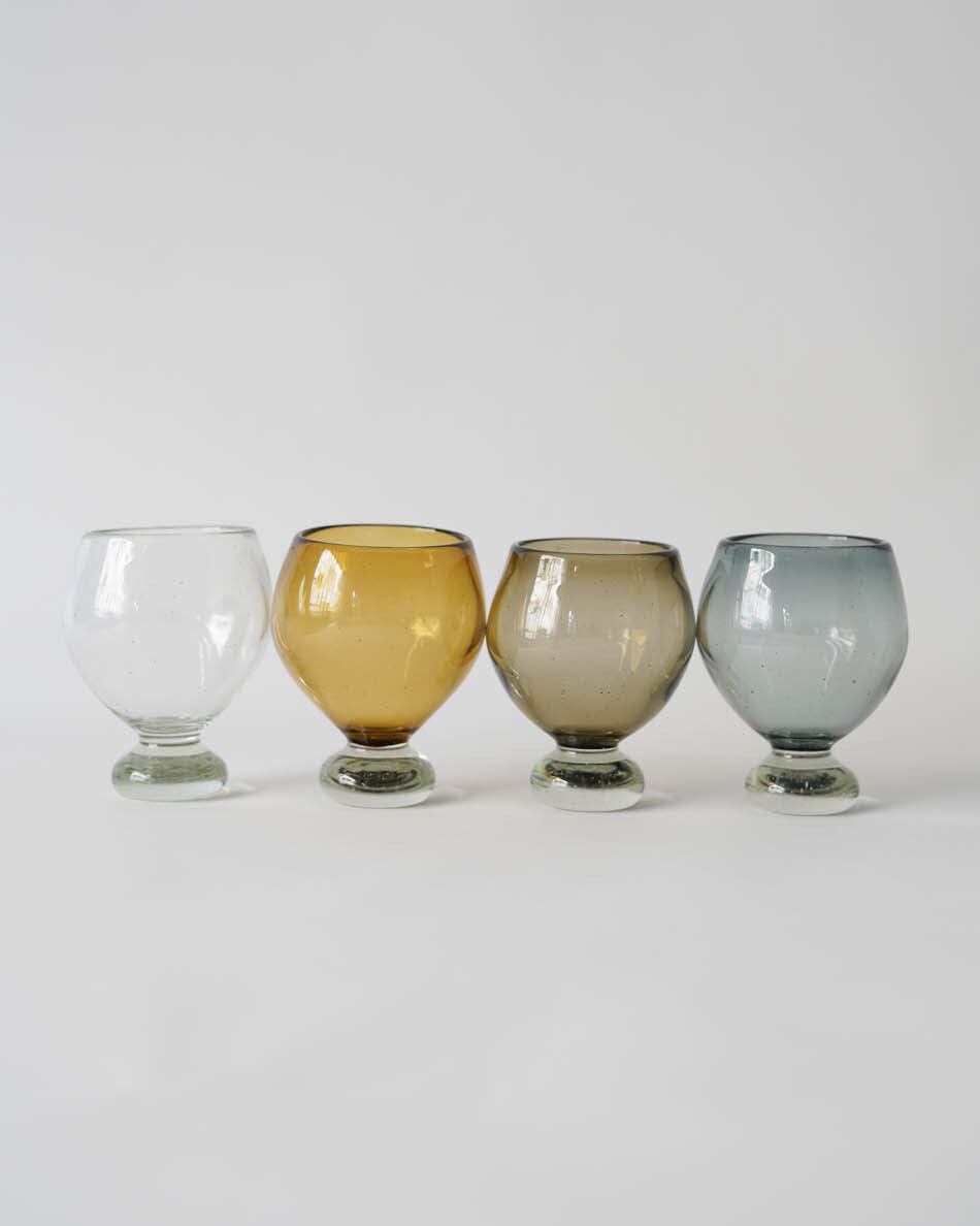 ころんとした丸いフォルムが可愛らしいグラス。やわらかい雰囲気で、手に取りやすいサイズ感です。ジュースやコーヒー、ビールにワインまで万能且つ、人気の形。今回は、贅沢に4色展開。お好みの色を選ぶ楽しさも、ぜひ味わっていただけたら嬉しいです。