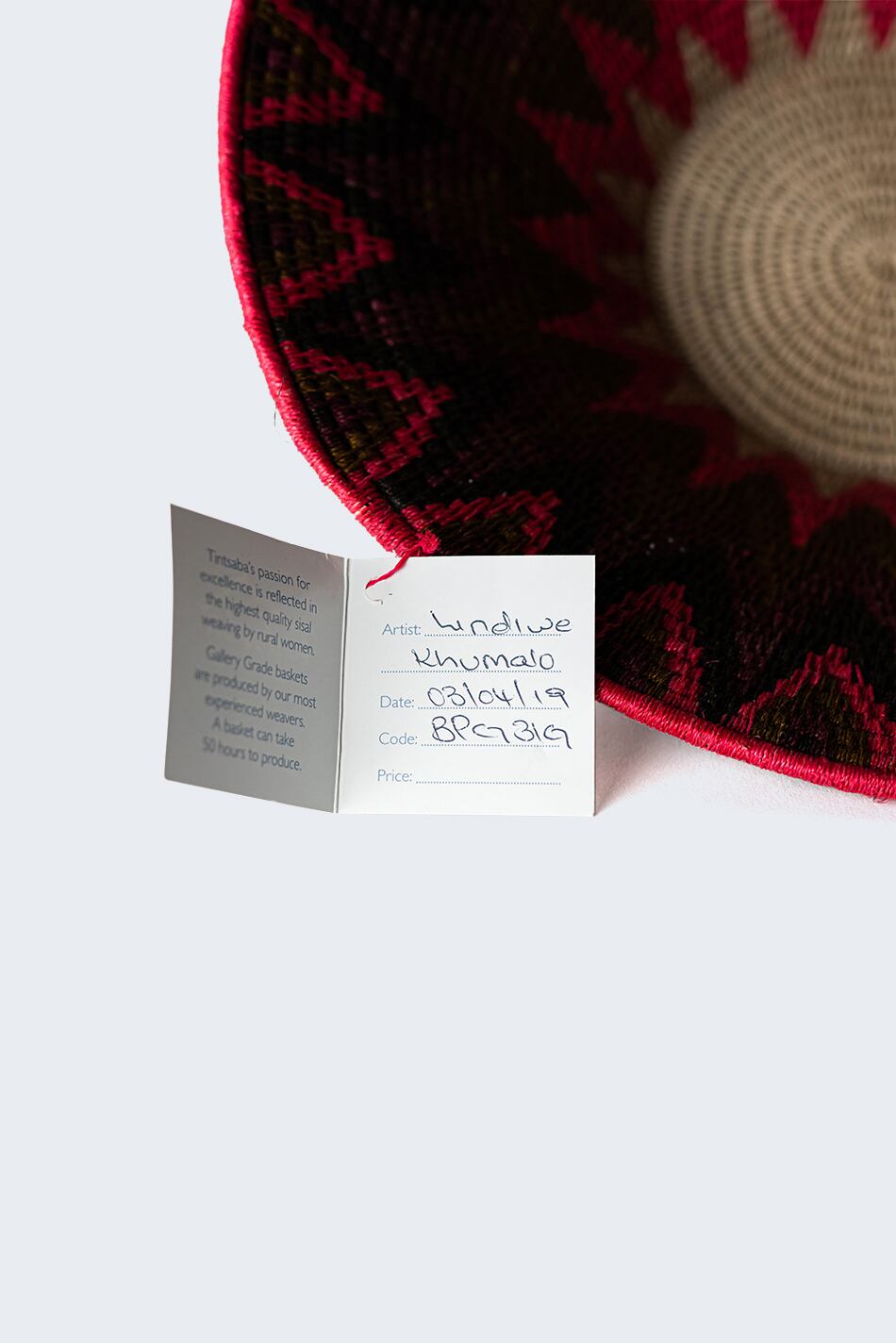 サイザル麻から集められた繊維麻でエスワティニ(前スワジランド王国)の農村部の女性たちによって編まれたバスケット。サイザル麻は強度があり、工業生産の進むアフリカでも環境に優しいとされ有害物質に置き換える素材として注目されています。その麻の繊維を一本一本収穫し、乾燥させ、手で染め、再び乾燥させ、水草に巻きつけながら一本の麻紐を作り、その工程を経てから、ようやくバスケットの編みが始ります。