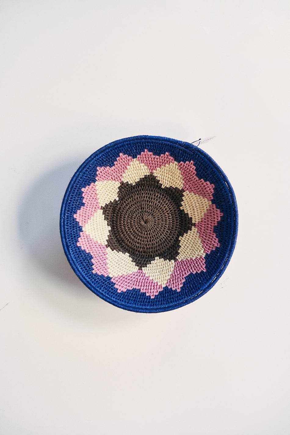 サイザル麻から集められた繊維麻でエスワティニ(前スワジランド王国)の農村部の女性たちによって編まれたバスケット。サイザル麻は強度があり、工業生産の進むアフリカでも環境に優しいとされ有害物質に置き換える素材として注目されています。その麻の繊維を一本一本収穫し、乾燥させ、手で染め、再び乾燥させ、水草に巻きつけながら一本の麻紐を作り、その工程を経てから、ようやくバスケットの編みが始ります。
