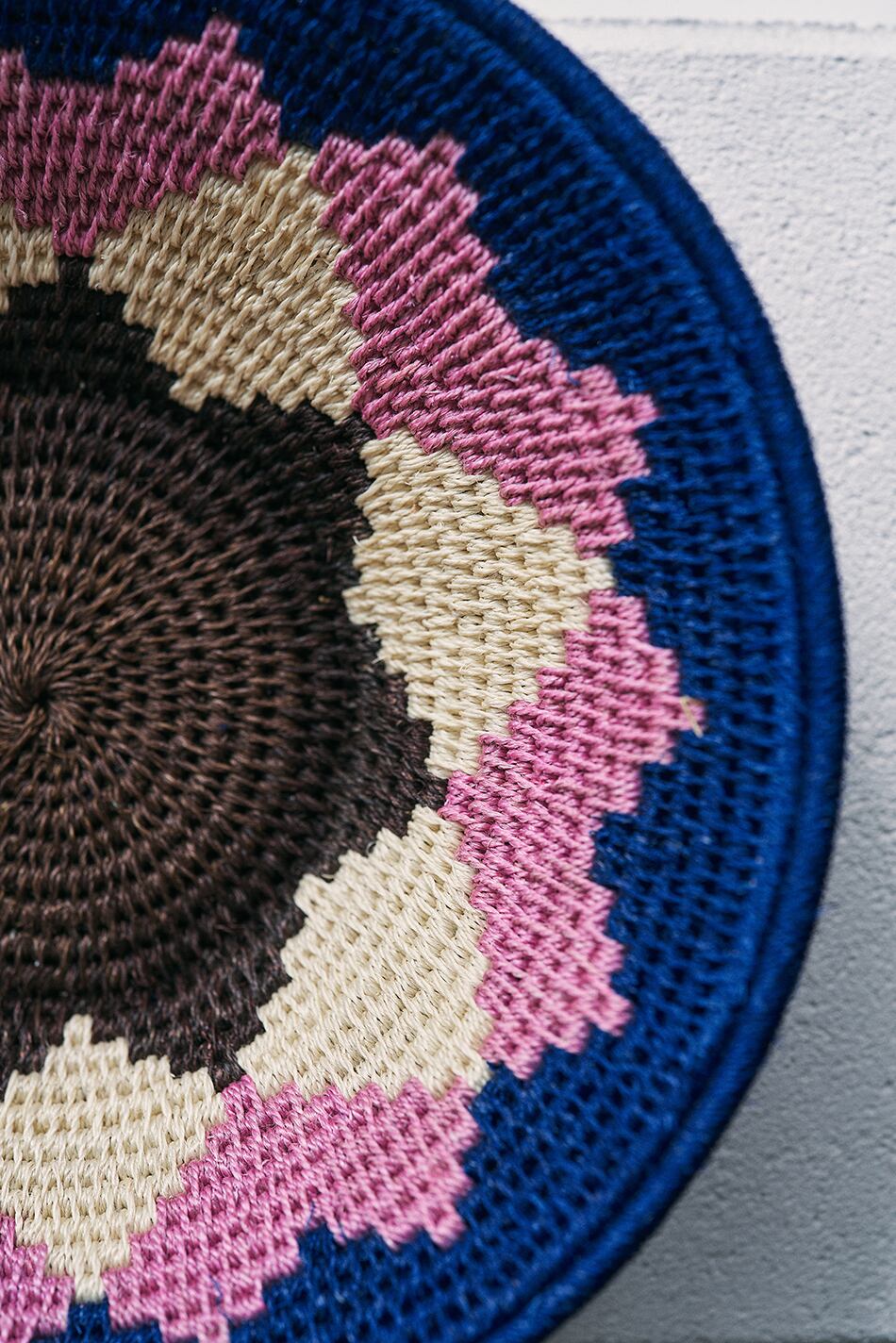 非常に細かく丁寧に編まれたバスケットで、Sサイズでおよそ30時間かけて作られています。一点一点、制作者のアーティスト名、制作日などもタグに書かれております。また、バスケットの裏には壁掛け用の輪っかが施されています。